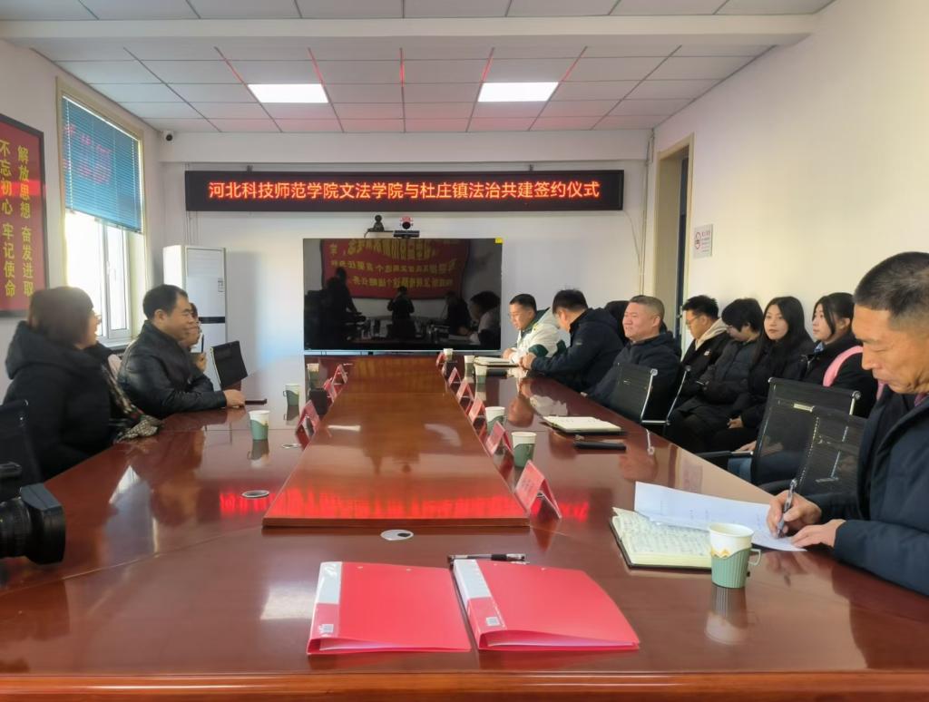 在杜庄镇政府,公司领导老师与杜庄镇相关负责人共同进行了William威廉英国官网与杜庄镇法治共建签约仪式。双方充分交流,公司经理赵福江与杜庄镇党委书记邵开礼共同签署了共建协议。